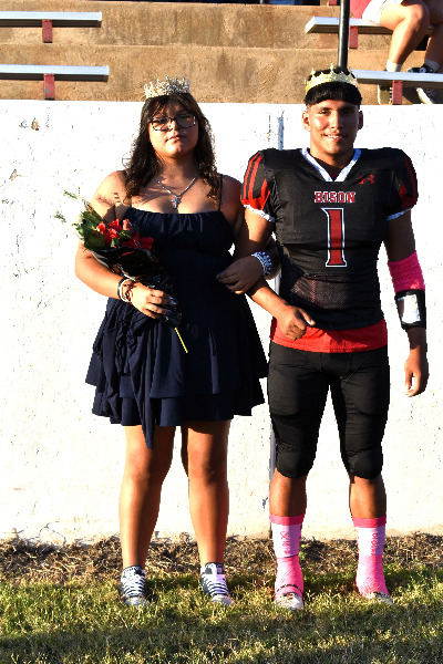 Congratulations go to seniors Mirylie Spottedcorn and Sergio Pineda who were crowned Homecoming Queen and King before the football game against Grandfield Friday night. The Bison had a decisive win over the Grandfield Bearcats 49-14.