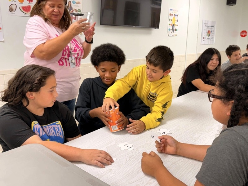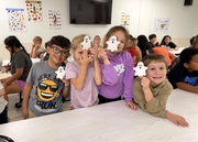 First and second grade students worked on a fun S.T.E.M. project with a Halloween theme. The sixth grade students helped their young friends make crystal ghosts. All three grade levels had a fun experience working with each other, and the teachers appreciated the help of the sixth grade in making the project run smoothly.