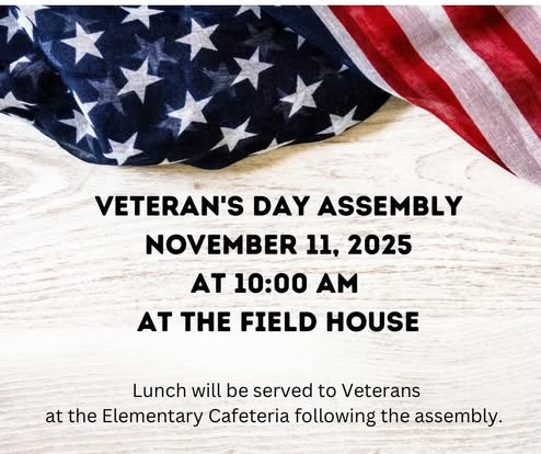 The annual Veteran's Day assembly Nov. 11 will include a slideshow as a way to honor our local veterans. We need your help in creating a slideshow salute to veterans. Please send photos of veterans from your family so we can honor them during our program. Deadline to be included in the slideshow is Nov. 6. Pictures should be emailed to sbuchanan@gearyschools.org.